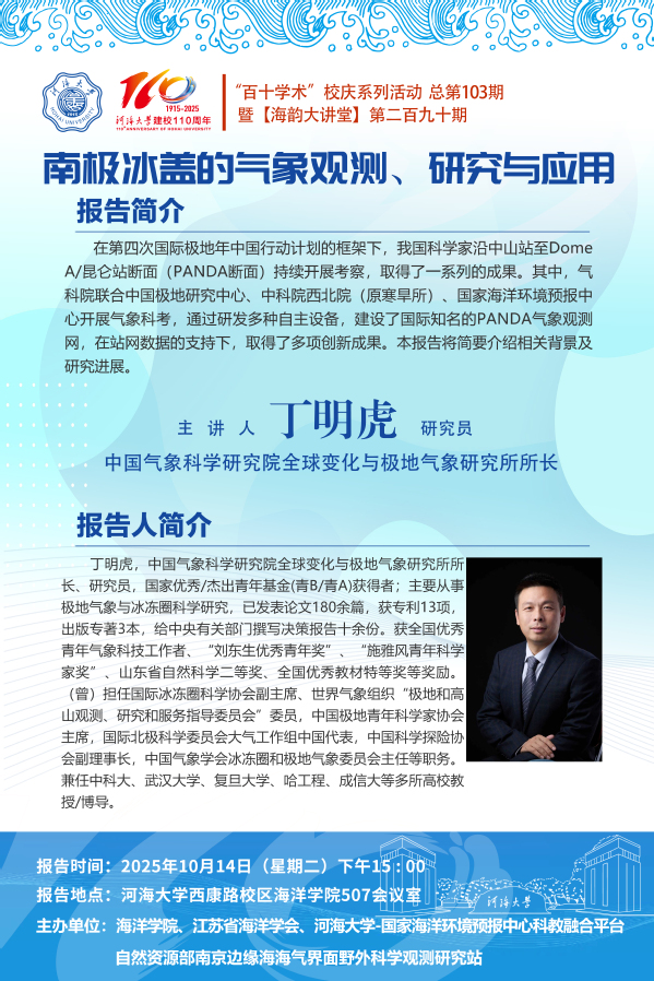 “百十学术”系列活动第103期——丁明虎研究员:南极冰盖的气象观测、研究与应用
