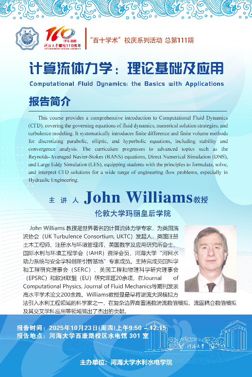 “百十学术”系列活动第111期——Prof. John Williams:Computational Fluid Dynamics: the Basics with Applications