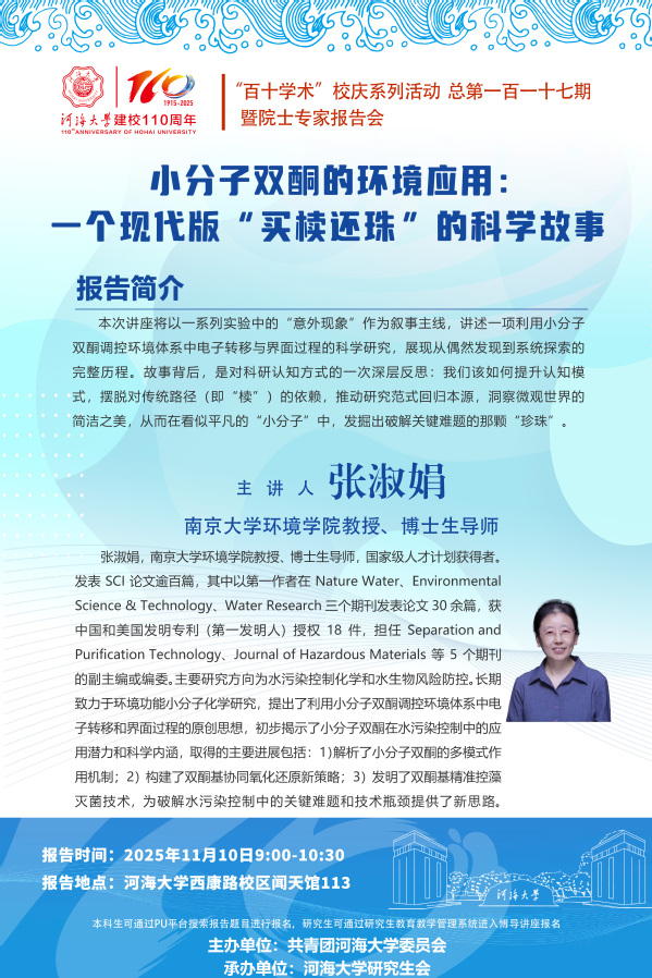 “百十学术”系列活动第117期——张淑娟教授:小分子双酮的环境应用:一个现代版“买椟还珠”的科学故事