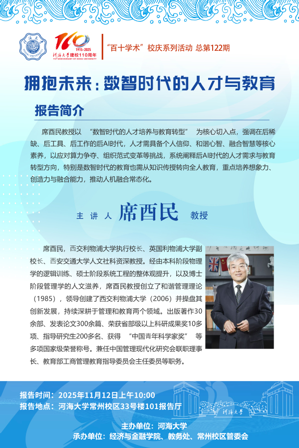 “百十学术”系列活动第122期——席酉民教授:拥抱未来:数智时代的人才与教育
