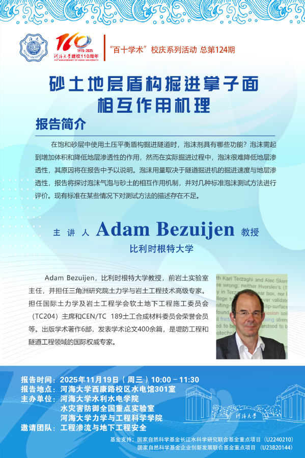 “百十学术”系列活动第124期——Prof. Adam Bezuijen:Interactions at the front face of a TBM when drilling in sand