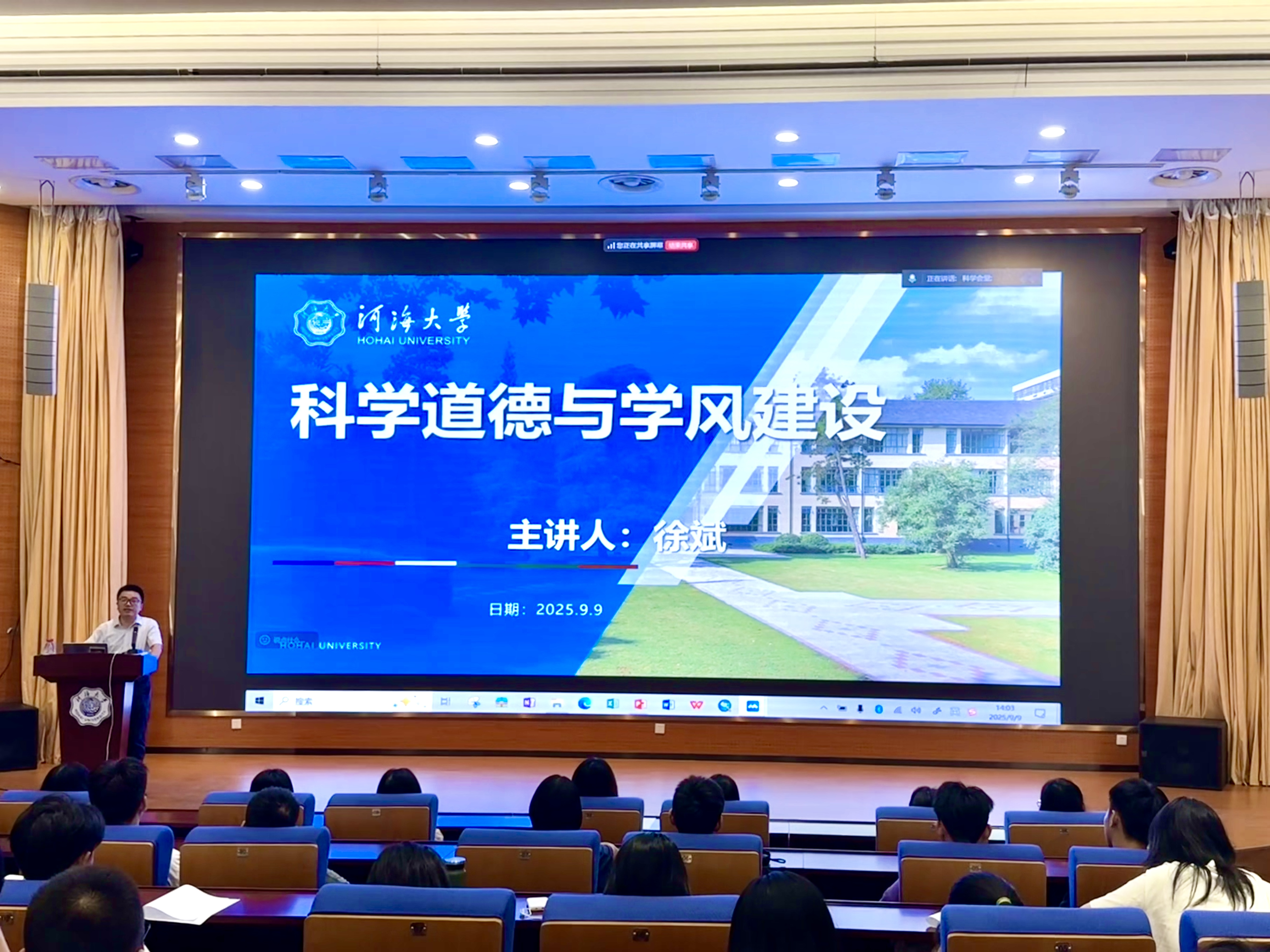 2025年9月9日,为引导牢固树立学术诚信观念,水文水资源学院主办,溯源保护母亲河协会承办的“学业领航·铸信为学”科学道德与学风建设专题讲座。本次讲座特邀徐斌教授担任主讲人。