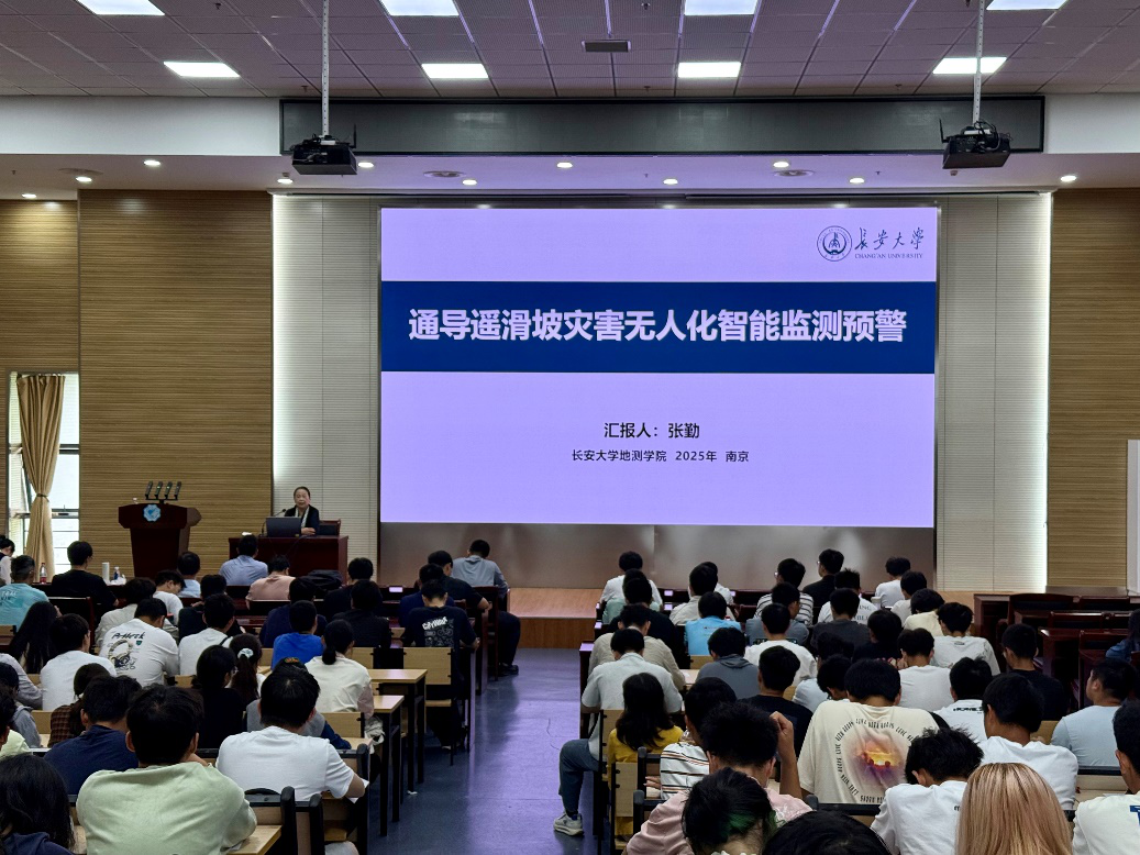 为促进学术交流,推动自然灾害监测预警技术的创新与发展,2025年9月30日上午,由地球科学与工程学院主办、地球奥秘探索社承办的地学大讲堂在河海大学江宁校区笃学楼208举办。活动特邀长安大学张勤教授题为“通导遥滑坡灾害无人化智能监测预警”的学术讲座。报告伊始,张勤教授指出,我国是世界上自然灾害最严重的国家之一,自然灾害防治事关国家发展和社会稳定大局,党和国家对此高度重视。她系统分析了当前灾害监测技术中存在的智能化、无人化程度不足等问题,强调了通信、导航、遥感(通导遥)技术在提升灾害监测预警能力中的关键作用。